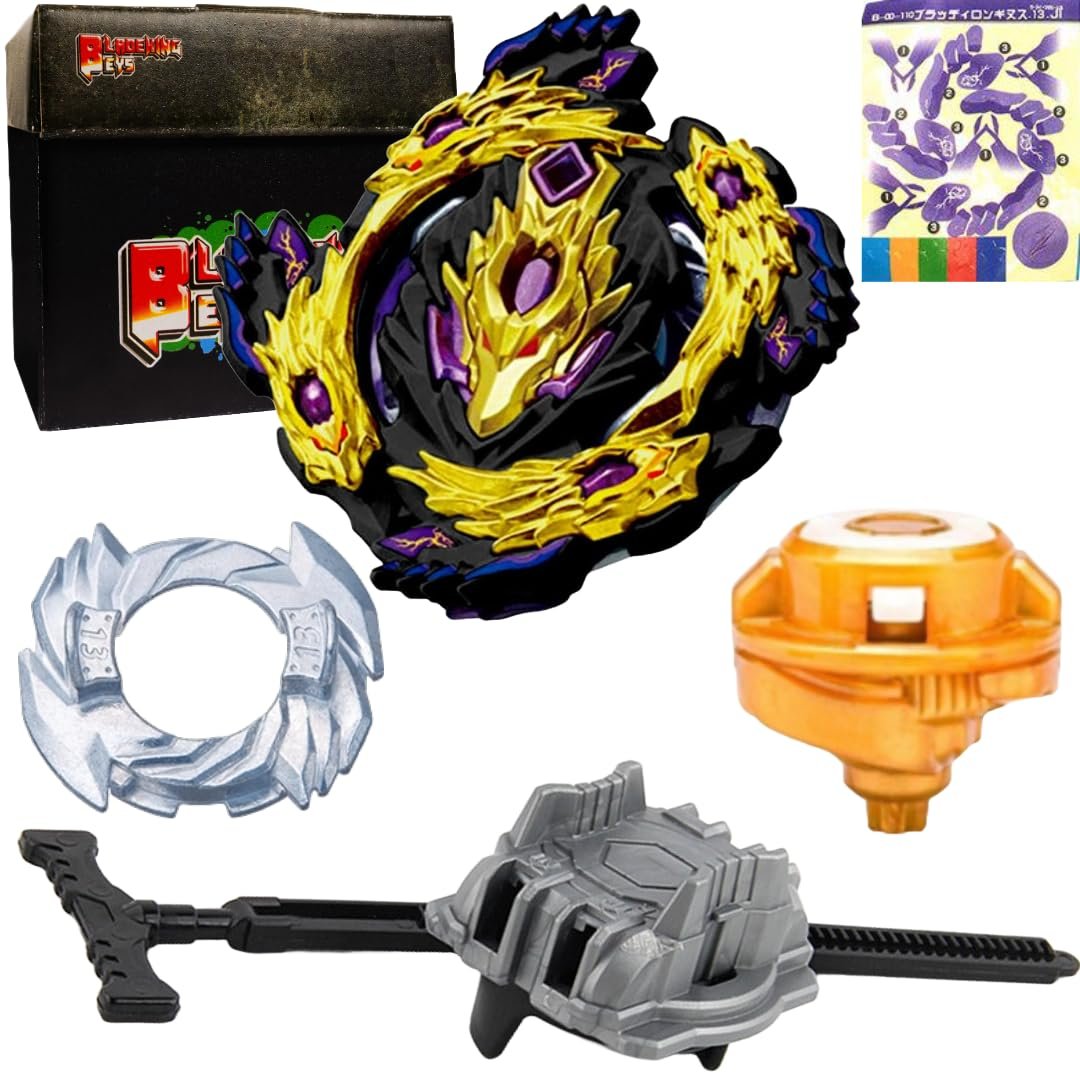 The Set contains 1 Blade + 1 Pull Rule Launcher LR(colour is same as shown in the image) + 1 Sticker + 1 Carton Toy Storage Box. Powerful launches can be made with this Pull Rule launcher LR. Support both right and Left spin Layer System blades. Powerful launches can be made with this Pull rule launcher. Handle it with care. BLADEKING BEYS reusable carton toy storage box let you store the toy nicely and securely.