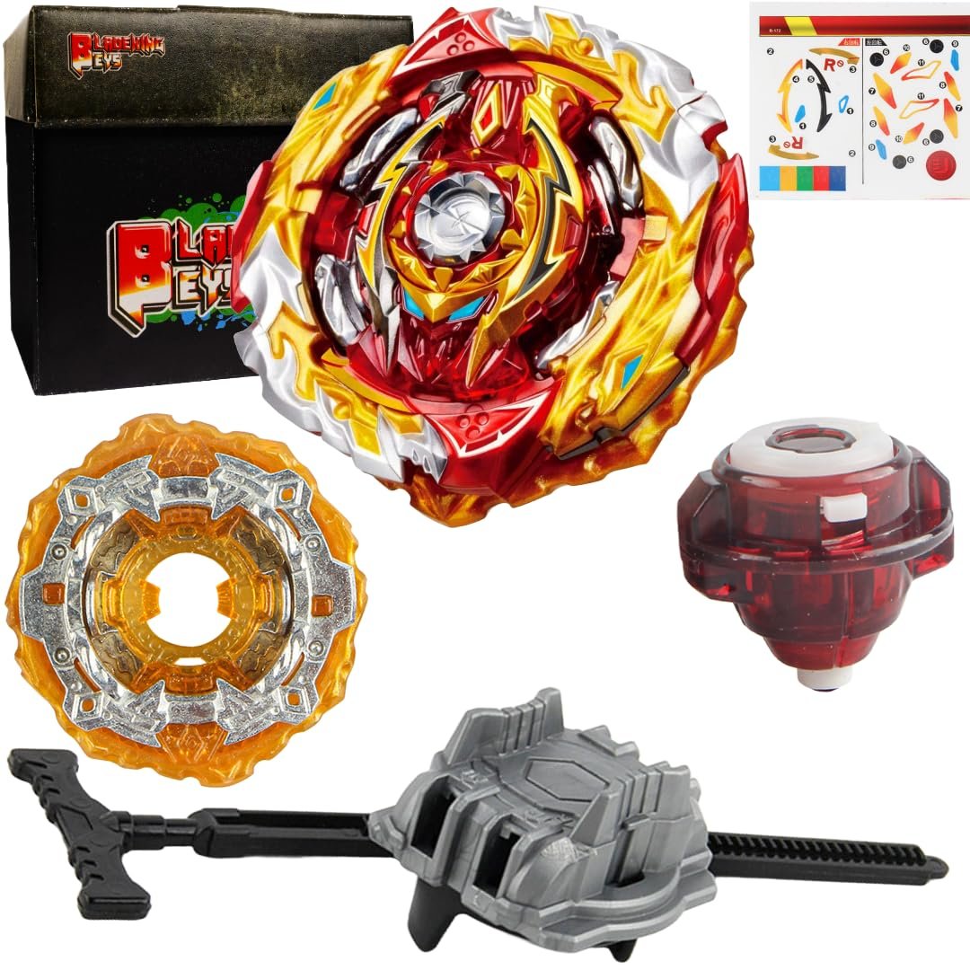 The Set contains 1 Blade + 1 Pull Rule Launcher LR(colour is same as shown in the image) + 1 Sticker + 1 Carton Toy Storage Box. Powerful launches can be made with this Pull Rule launcher LR. Support both right and Left spin Layer System blades. Powerful launches can be made with this Pull rule launcher. Handle it with care. BLADEKING BEYS reusable carton toy storage box let you store the toy nicely and securely.